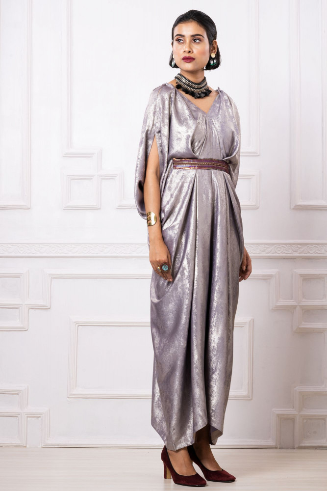 The Elysian Drift Jumpsuit epitomizes effortless elegance with its fluid draping and relaxed silhouette. Crafted to flow gracefully with every step, this kaftan-inspired one-piece offers a perfect blend of comfort and modern sophistication. The soft, luxurious fabric drapes beautifully, creating an ethereal look that flatters any body type.